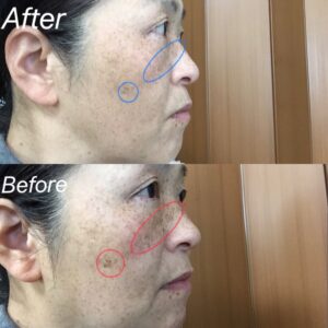 全体的に今までくすんで見えていた顔が、”明るく”なり、そばかすも”薄く”なってきた。