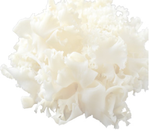 はなびらだけは、一般的なきのこのイメージとは違い、名前の由来の通り花びらのような装いをしています。その姿は、白色から淡黄色の美しく綺麗なふんわりしたまるで海の中にある白い珊瑚礁のようです。